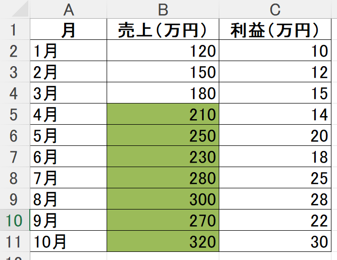 たとえば「売上が200万円以上のセルを緑色にする」といった設定で、重要な数値を視覚的に強調できます。