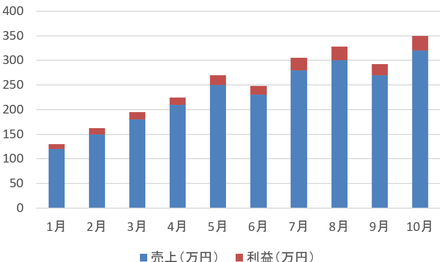 棒グラフや折れ線グラフを作成すると、数値の変化が一目でわかります。