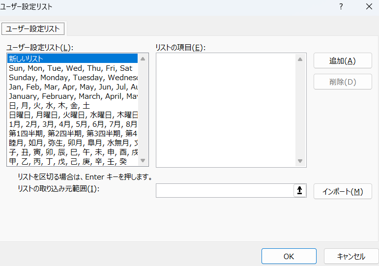 このような自分専用の並び順をExcelに覚えさせるのがユーザー定義リストです。